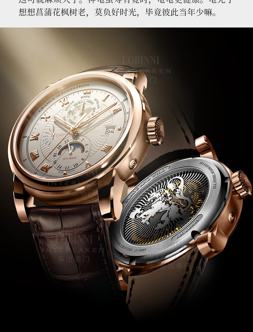 商品名称:罗宾尼 男士全自动机械表 防水大表盘16003 银壳黑面黑皮