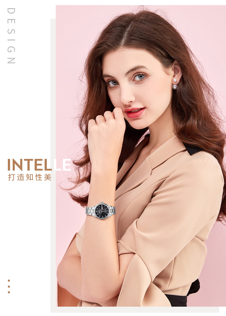 锐力 进口机芯星期日历石英女表 R28093L 黑面钢带