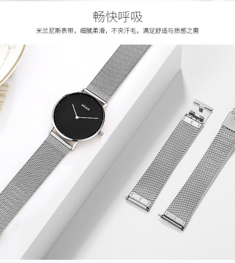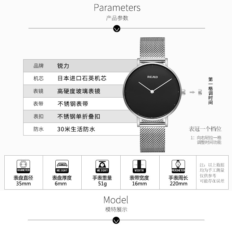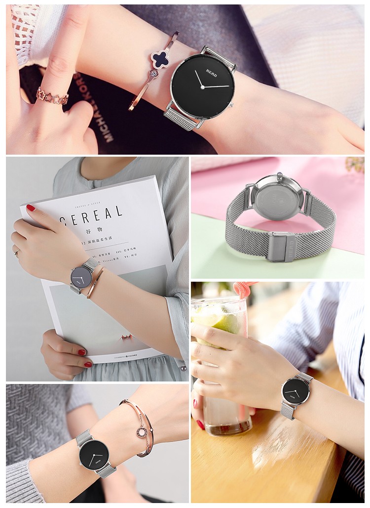 商品名称:锐力READ 超薄不锈钢网带 银白米兰带条钉石英女表R6005L