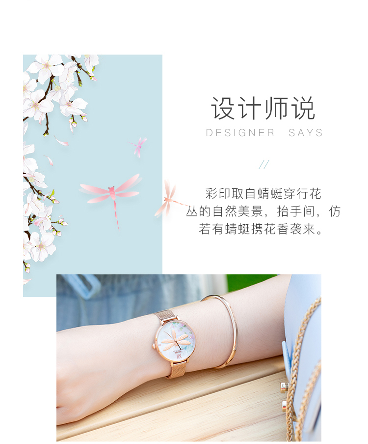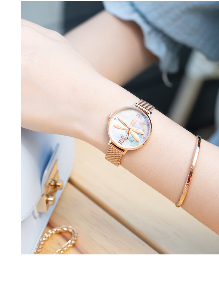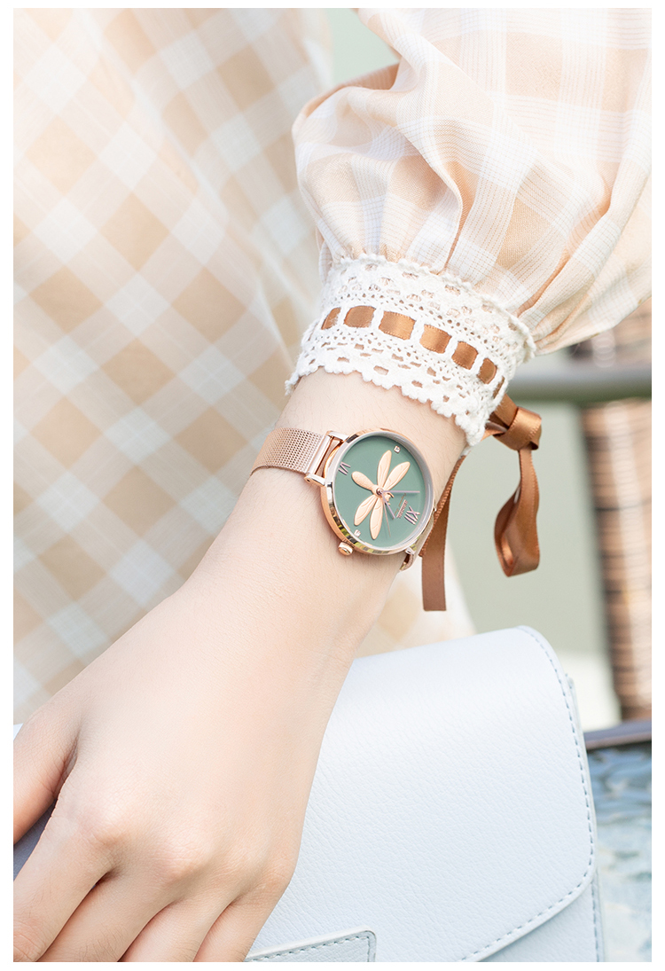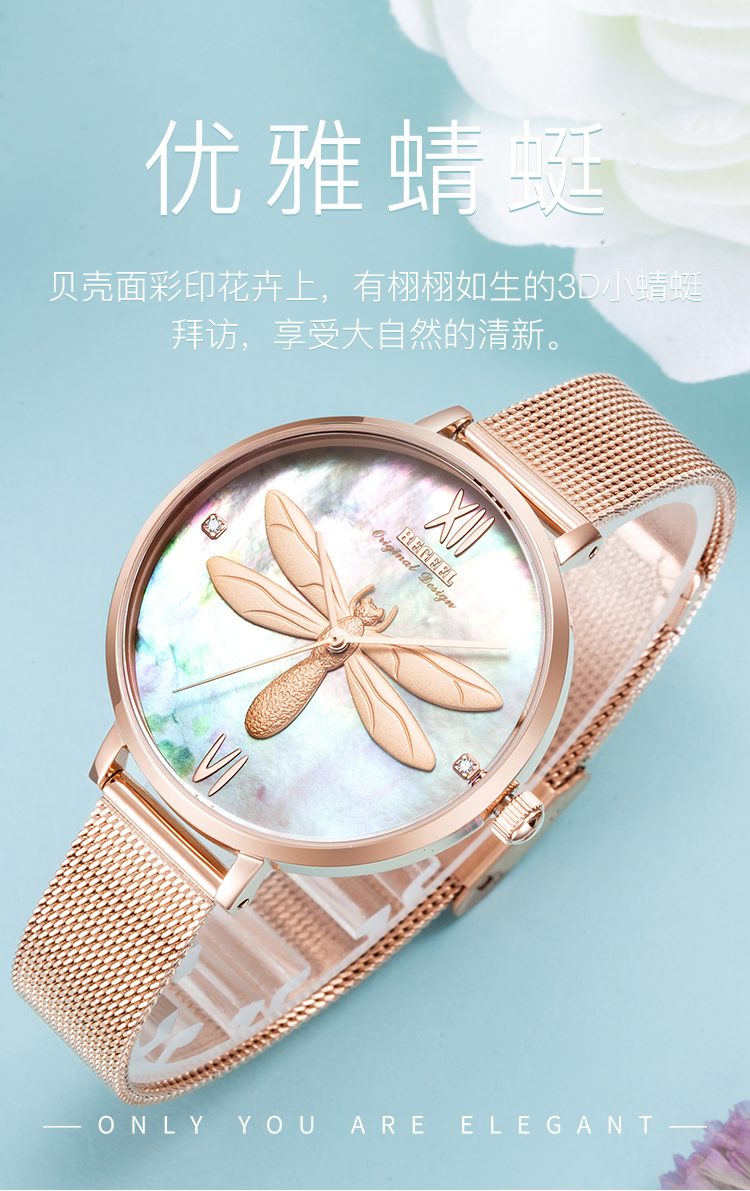 商品名称:宾爵(BEGEEL)新品上市 进口机芯优雅蜻蜓石英女表 B9662L 玫壳蜻蜓绿面网带