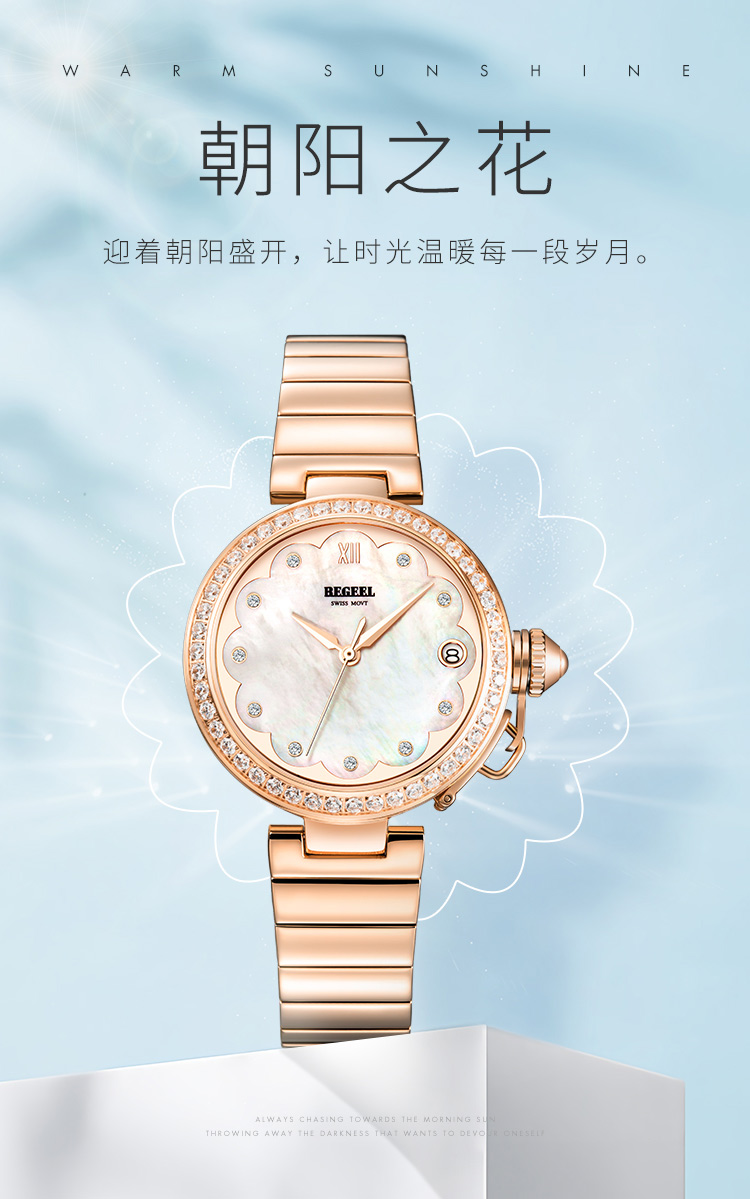 商品名称:宾爵(BEGEEL)手表朝阳之花瑞士进口机芯时尚百搭简约轻奢女士石英女士腕表 B9161L玫壳贝面钢带