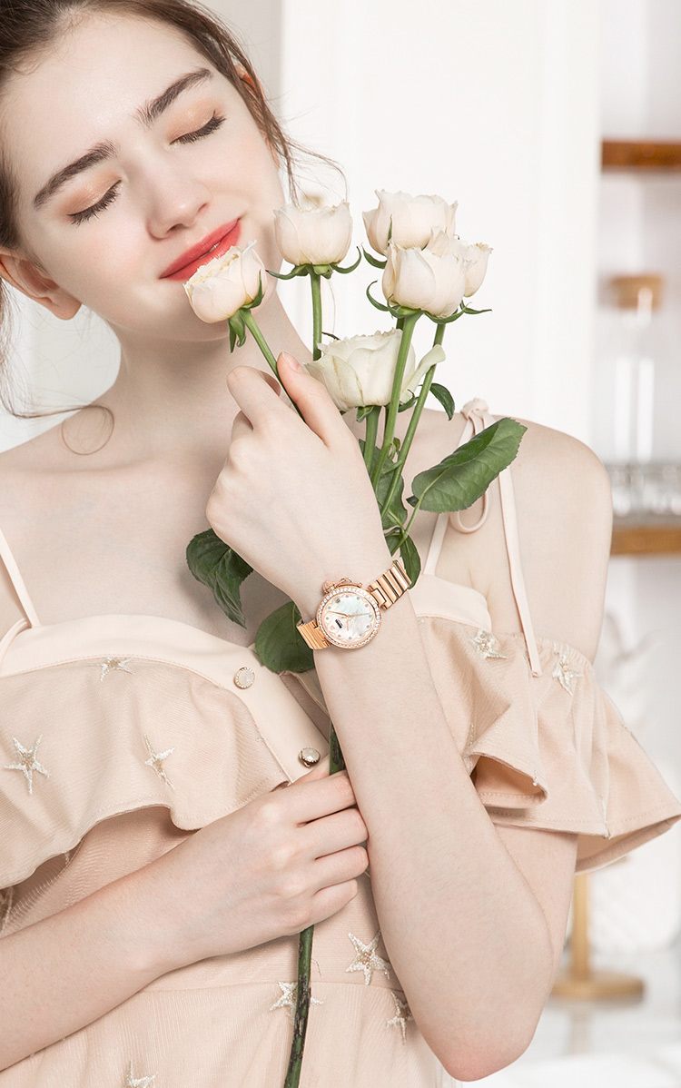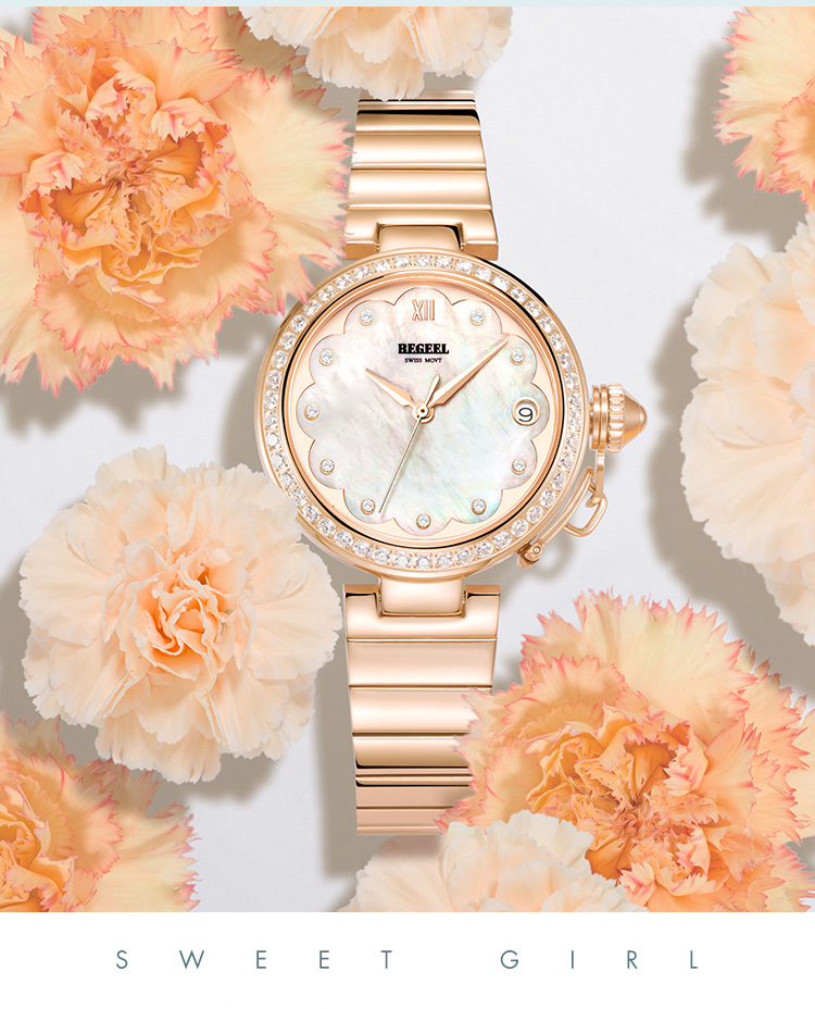 宾爵(BEGEEL)手表朝阳之花瑞士进口机芯时尚百搭简约轻奢女士石英女士腕表 B9161L玫壳贝面钢带