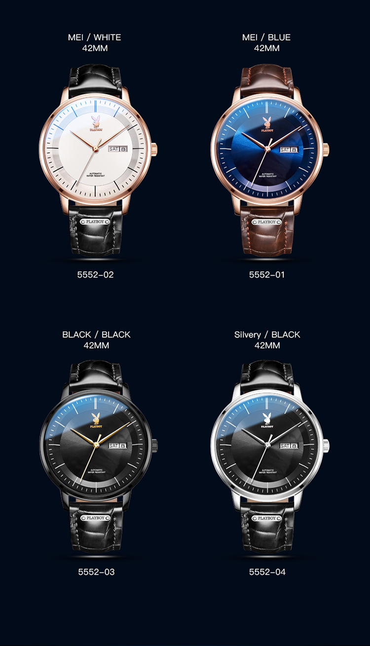 花花公子(PLAYBOY) 全自动简约机械男表 玫边白面皮带5552