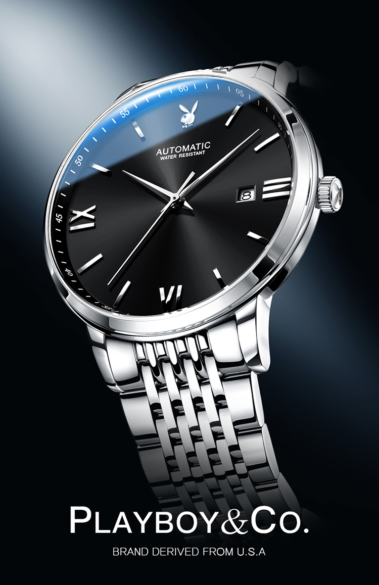 花花公子(PLAYBOY)欧美时尚全自动钢带男士手表 5555银灰钢(纤薄时尚系列)