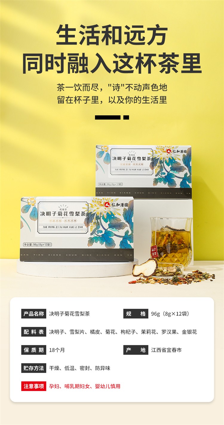 商品名称:仁和 决明子菊花雪梨茶1盒*12袋*8g 6970050528714
