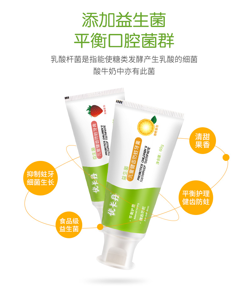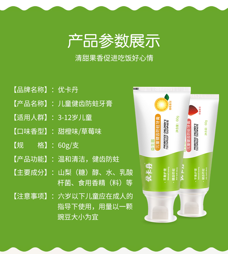 商品名称:优卡丹 儿童健齿防蛀牙膏(草莓味)1盒*60g 6941220909046