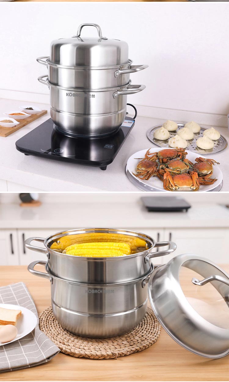 康巴赫欧式不锈钢三层底蒸锅套装28cm KBH28TB1 6957929913291 偏远运费另算