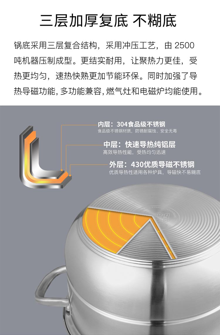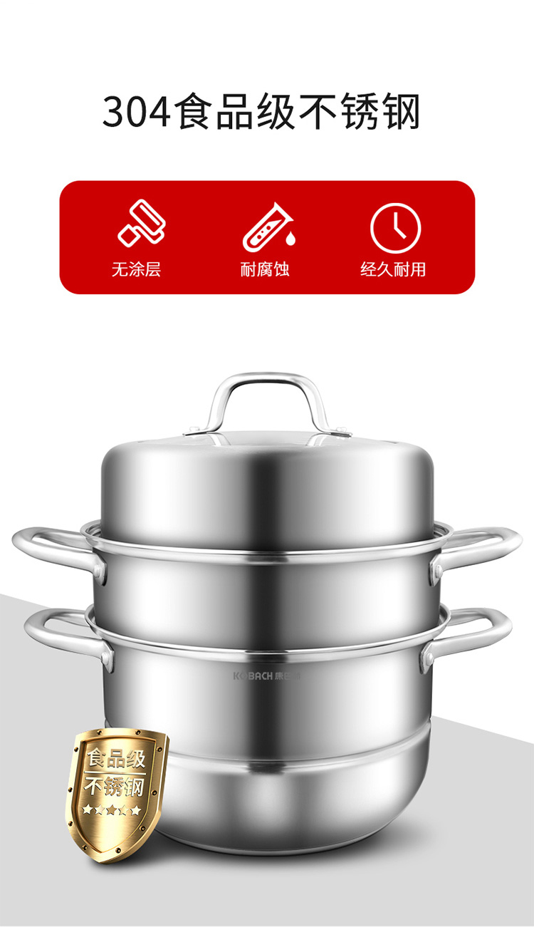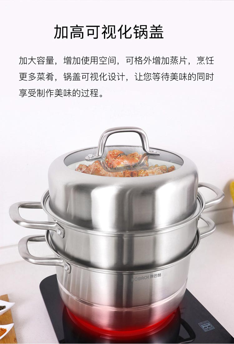商品名称:康巴赫欧式不锈钢三层底蒸锅套装28cm KBH28TB1 6957929913291 偏远运费另算