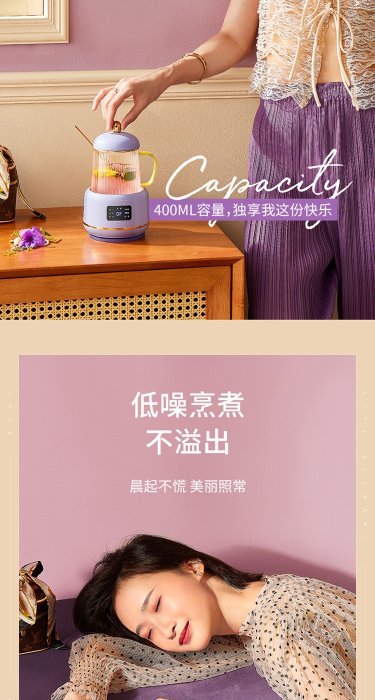 生活元素 迷你燕窝养生杯400ML 香芋紫 I156 6970017565578( 新疆、西藏,港澳台不发货)