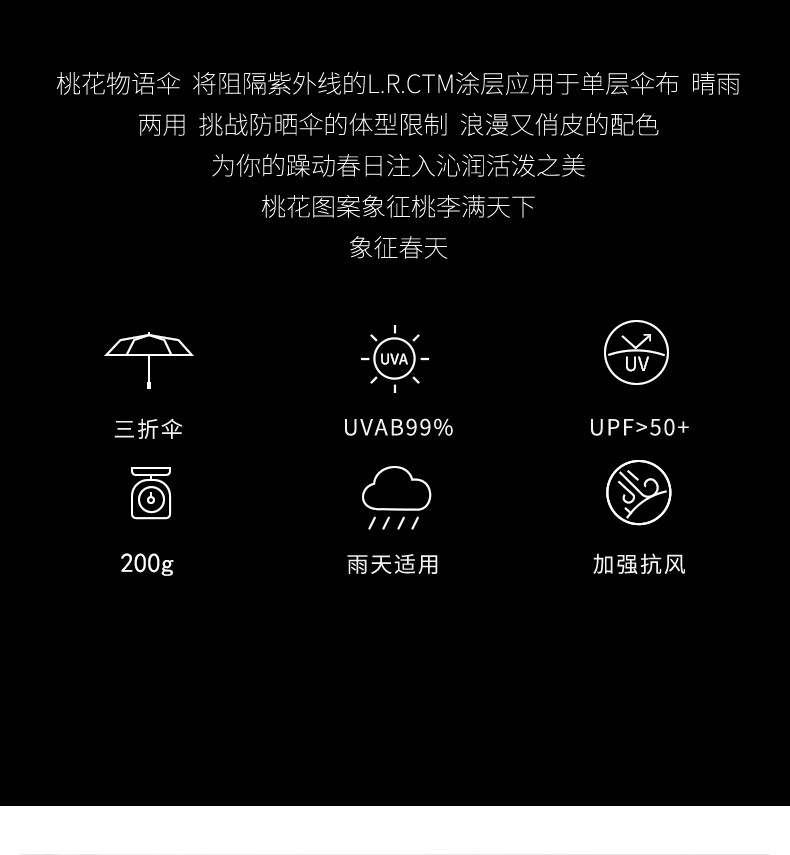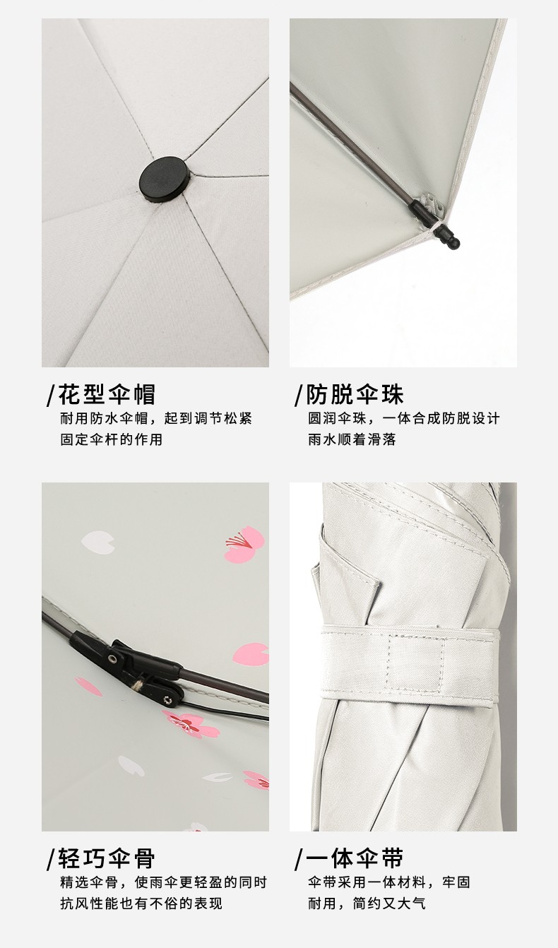 商品名称:衡利超轻彩胶桃花晴雨伞+22寸直径100厘米+绿色
