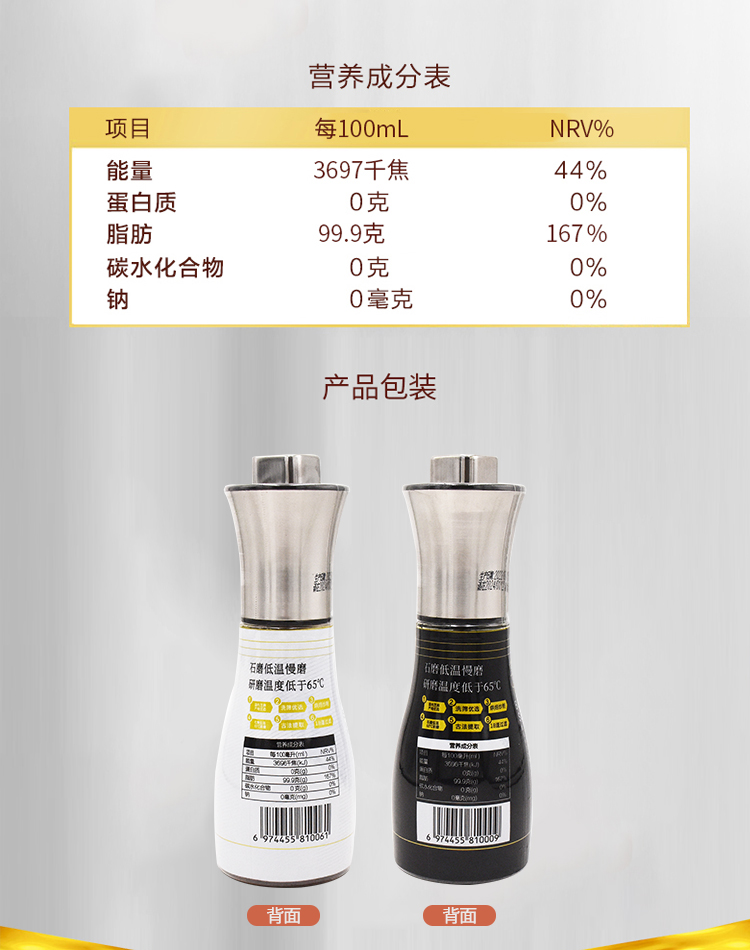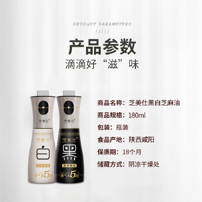 商品名称:芝美仕 小磨香油喷壶180m l+补充装180ml 白芝麻/黑芝麻 可选 下单备注种类