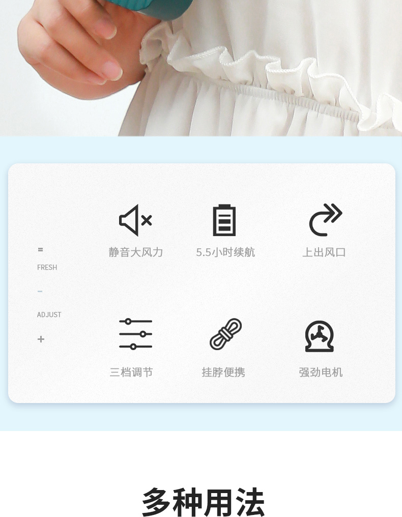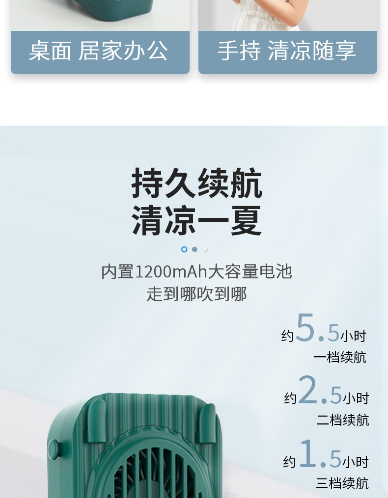 商品名称:广达威 挂脖便携风扇 Y2 白色/绿色/藏蓝色 可选下单备注颜色
