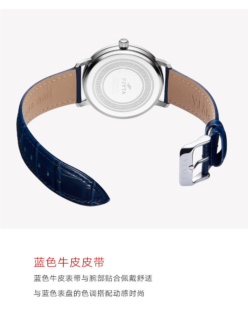 商品名称:飞亚达 经典系列蓝面商务皮带男士石英手表 JG100039.WBB