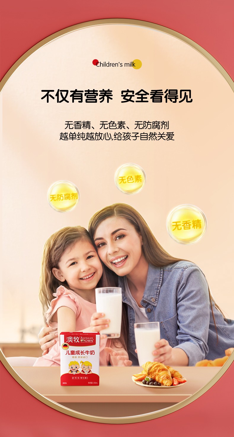 商品名称:澳牧儿童成长牛奶 200ml/盒*12 澳大利亚原装进口 新疆西藏内蒙不发货