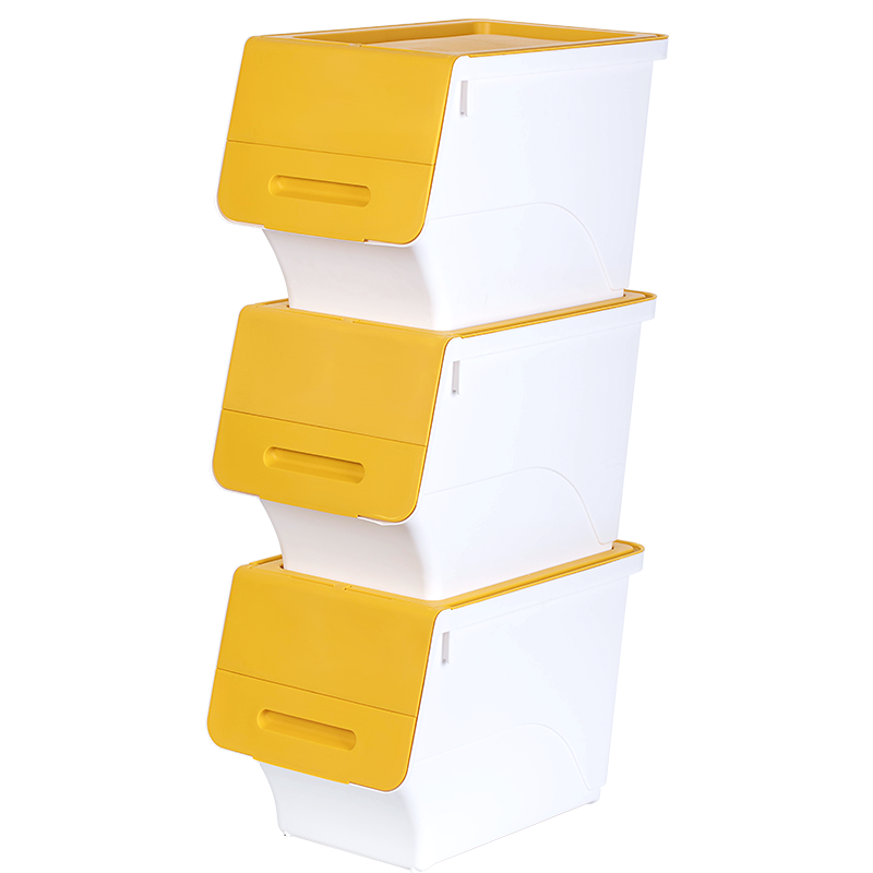 茶花 斜翻盖储物箱塑料收纳箱-M*3只 2886-3 咖啡色/黄色/ 红色/ 蓝色 可选 下单备注颜色