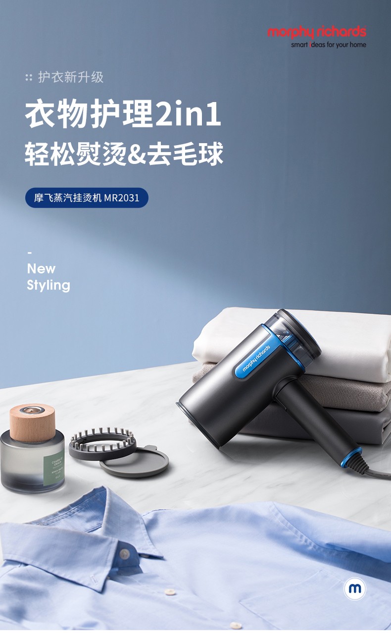 摩飞电器morphy richards蒸汽挂烫机MR2031 深空灰/椰奶白 下单请备注颜色