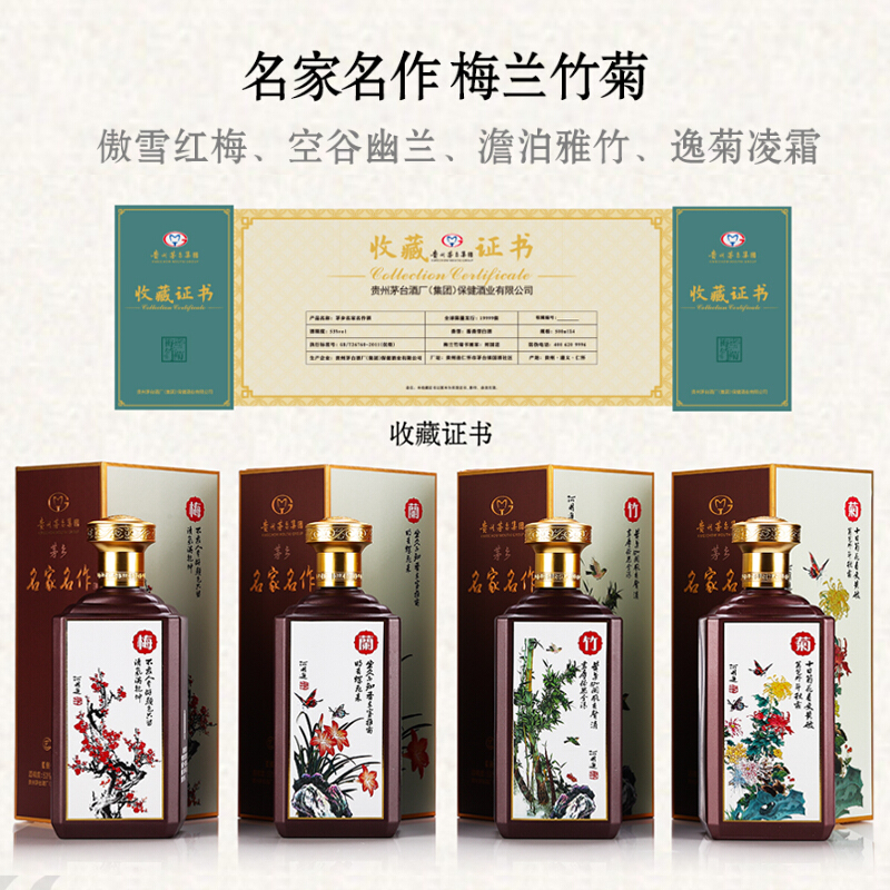 商品名称:贵州茅台集团 茅乡名家名作酒 白酒礼盒 整箱 53度酱香型白酒 500ml咖色瓶 *4瓶