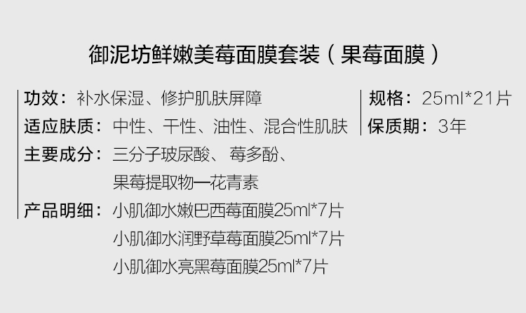 商品名称:御泥坊小肌御鲜嫩美莓面膜套装25ml*21