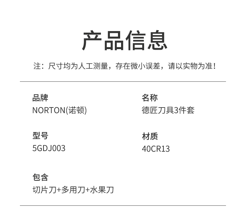 商品名称:诺顿 德匠刀具3件套5GDJ003