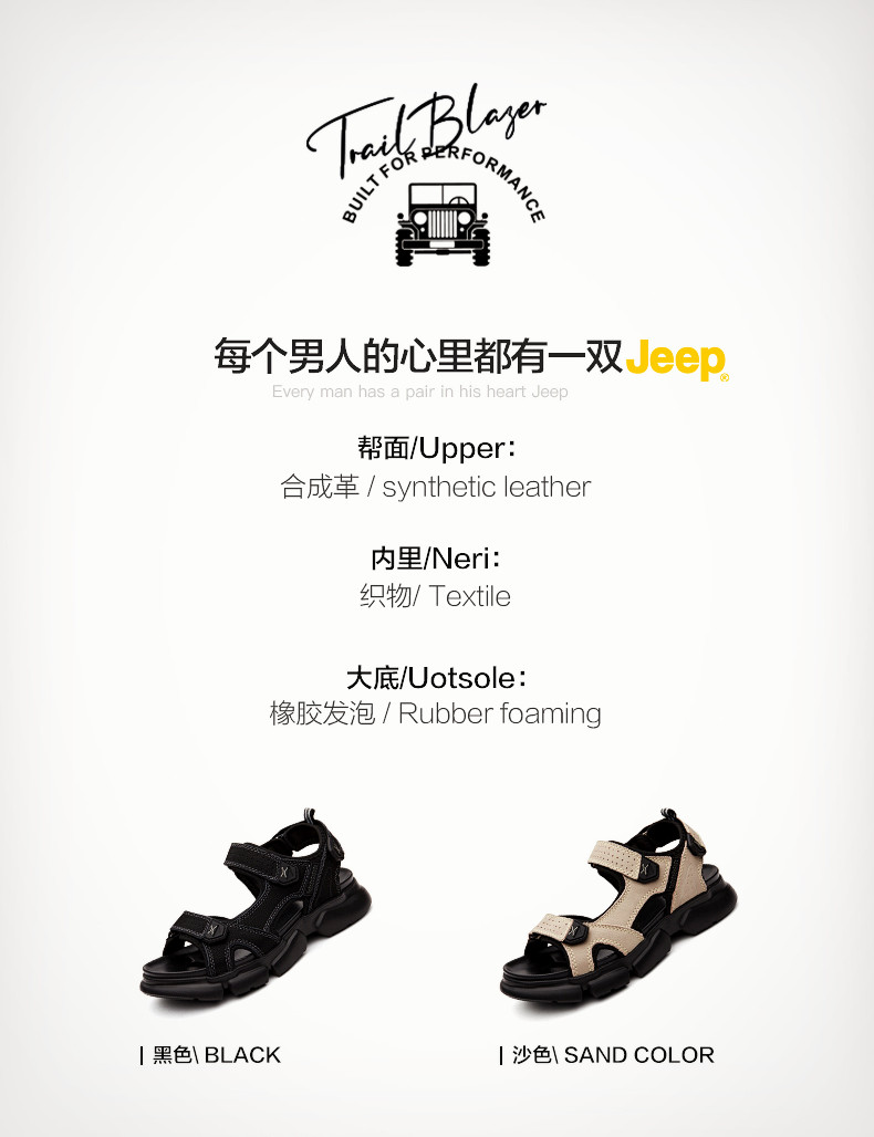 商品名称:jeep 运动沙滩拖鞋 P221591531 黑色/沙色 39-45码 可选下单备注颜色尺码