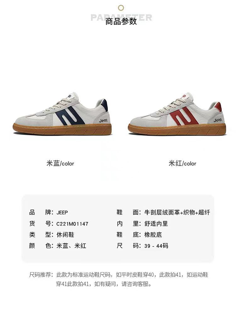 商品名称:jeep 复古英伦风板鞋 C221M01147 米蓝/米红 39-44码 可选下单备注颜色尺码