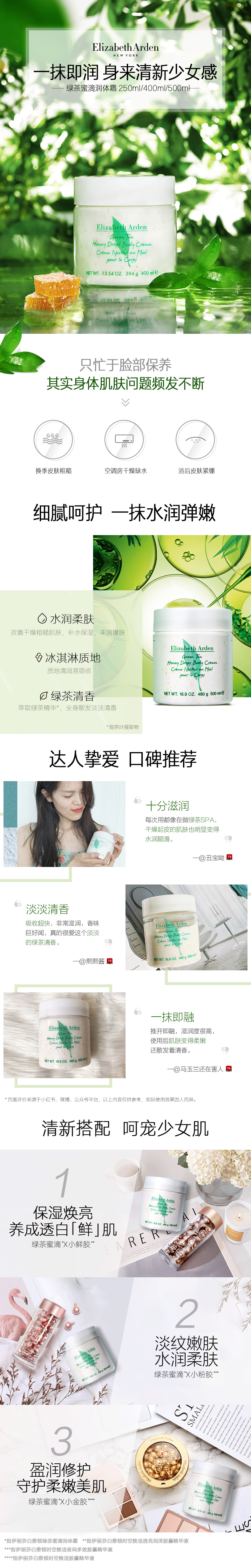 商品名称:伊丽莎白雅顿 绿茶蜜滴润体霜2瓶*400ml 085805029852