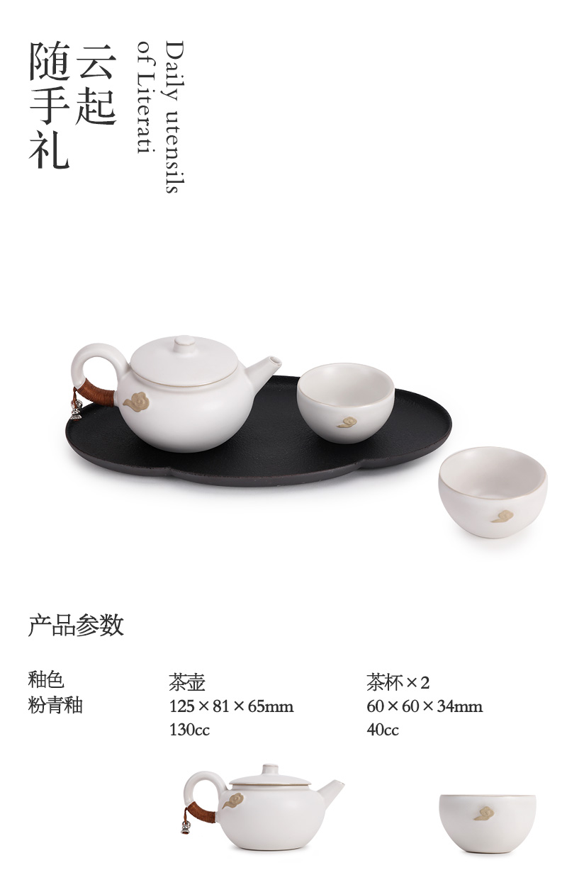 商品名称:万仟堂 云起·随手礼 (1壶2杯1盘)粉青釉/羊脂白釉 可选下单备注颜色