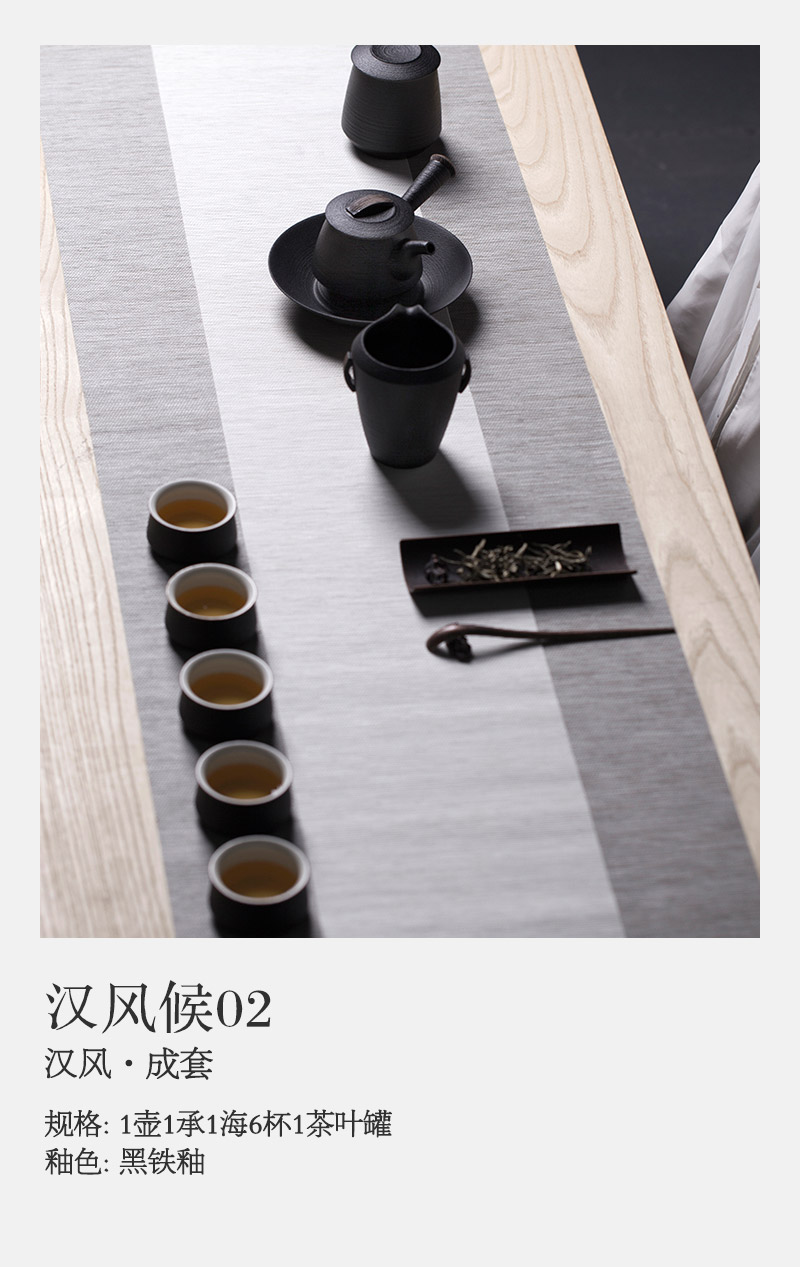 商品名称:万仟堂 汉风候02·成套 茶具套装(1壶1承6杯1海1茶叶罐)黑铁釉