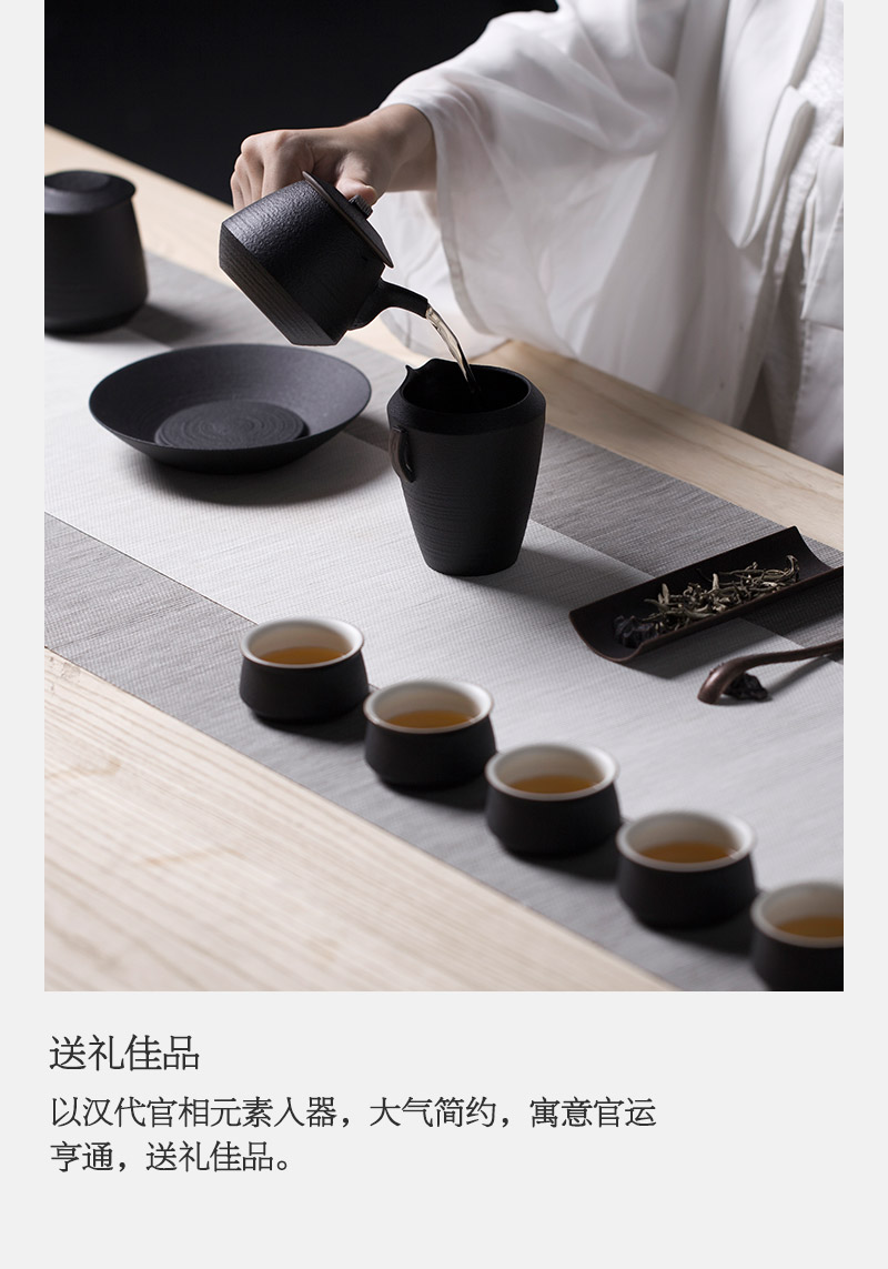 万仟堂 汉风候02·成套 茶具套装(1壶1承6杯1海1茶叶罐)黑铁釉