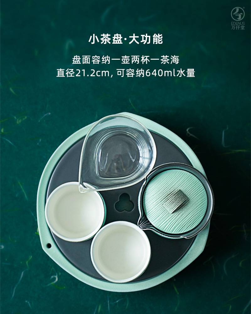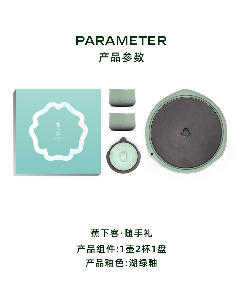 商品名称:万仟堂 蕉下客随手礼 茶具套装(1壶1盘2杯) 湖绿釉