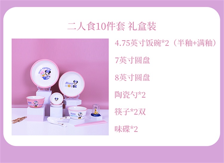 商品名称:迪士尼 塘趣米妮4.75英寸碗*1+350ML马克杯*1+勺子*1+合金筷子1双