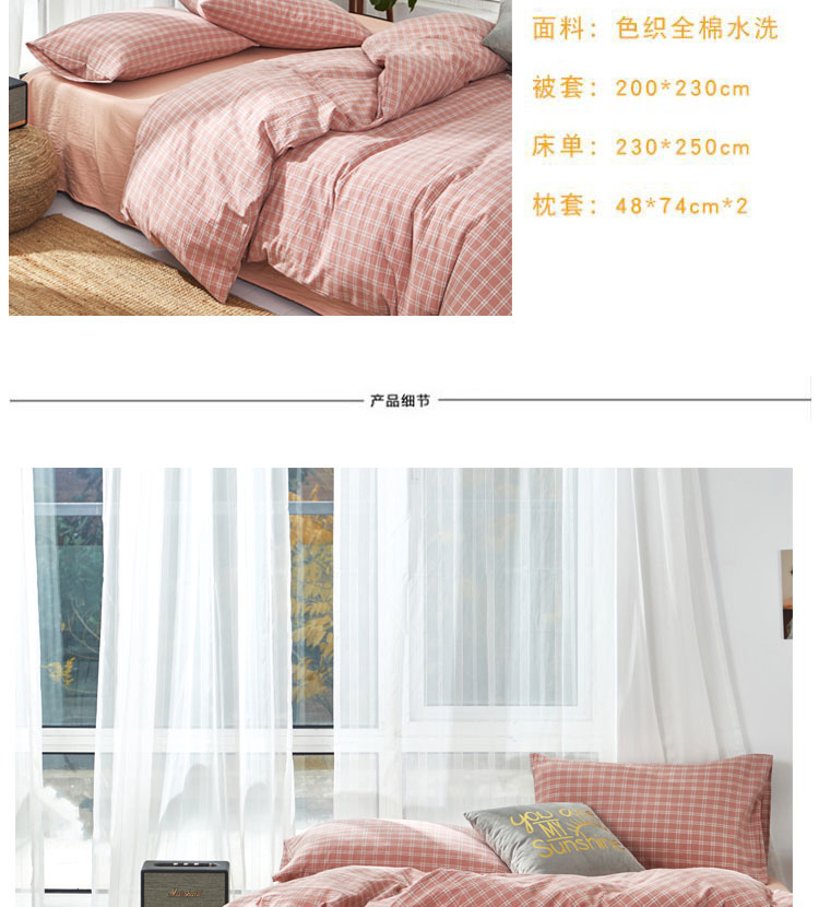 生活元素小方格色织全棉水洗四件套 粉色小方格 SZ-221C (被套200*230cm+床单230*250cm+枕套48*74cm*2个)新疆、西藏、港澳台不发货