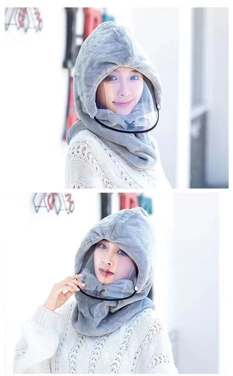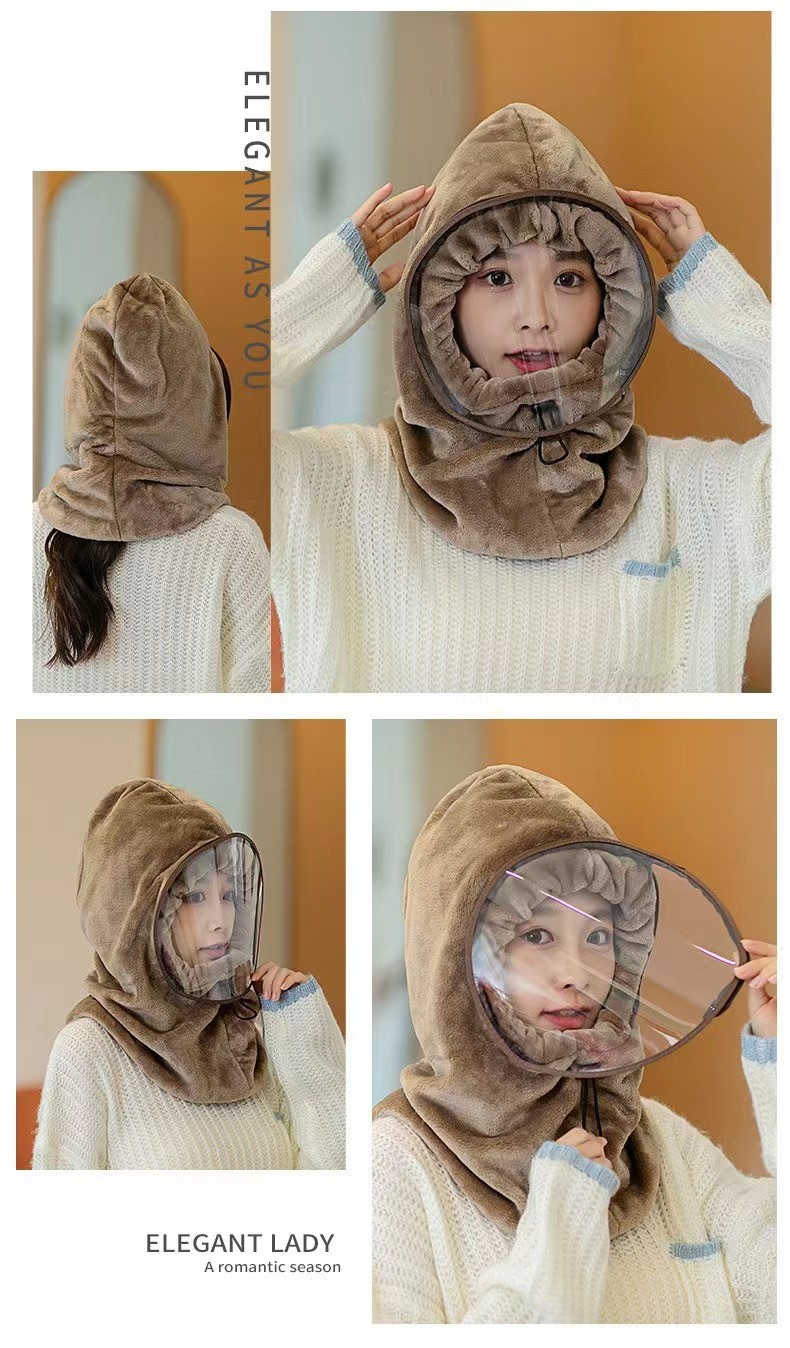 商品名称:保暖一体包头帽子 棕/灰/粉颜色随机发