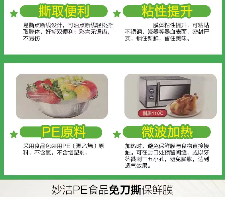 商品名称:妙洁 免刀撕PE保鲜膜50米中碗经济装 M160DME/M160DME-HN