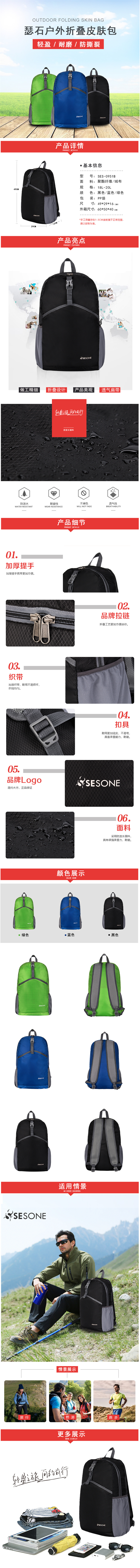 商品名称:瑟石 户外折叠皮肤包 SES-0951B 黑/绿/蓝可选下单备注颜色