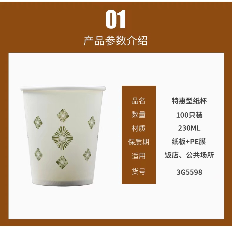 商品名称:芳草地 特惠型纸杯 100只*230毫升 3G5598