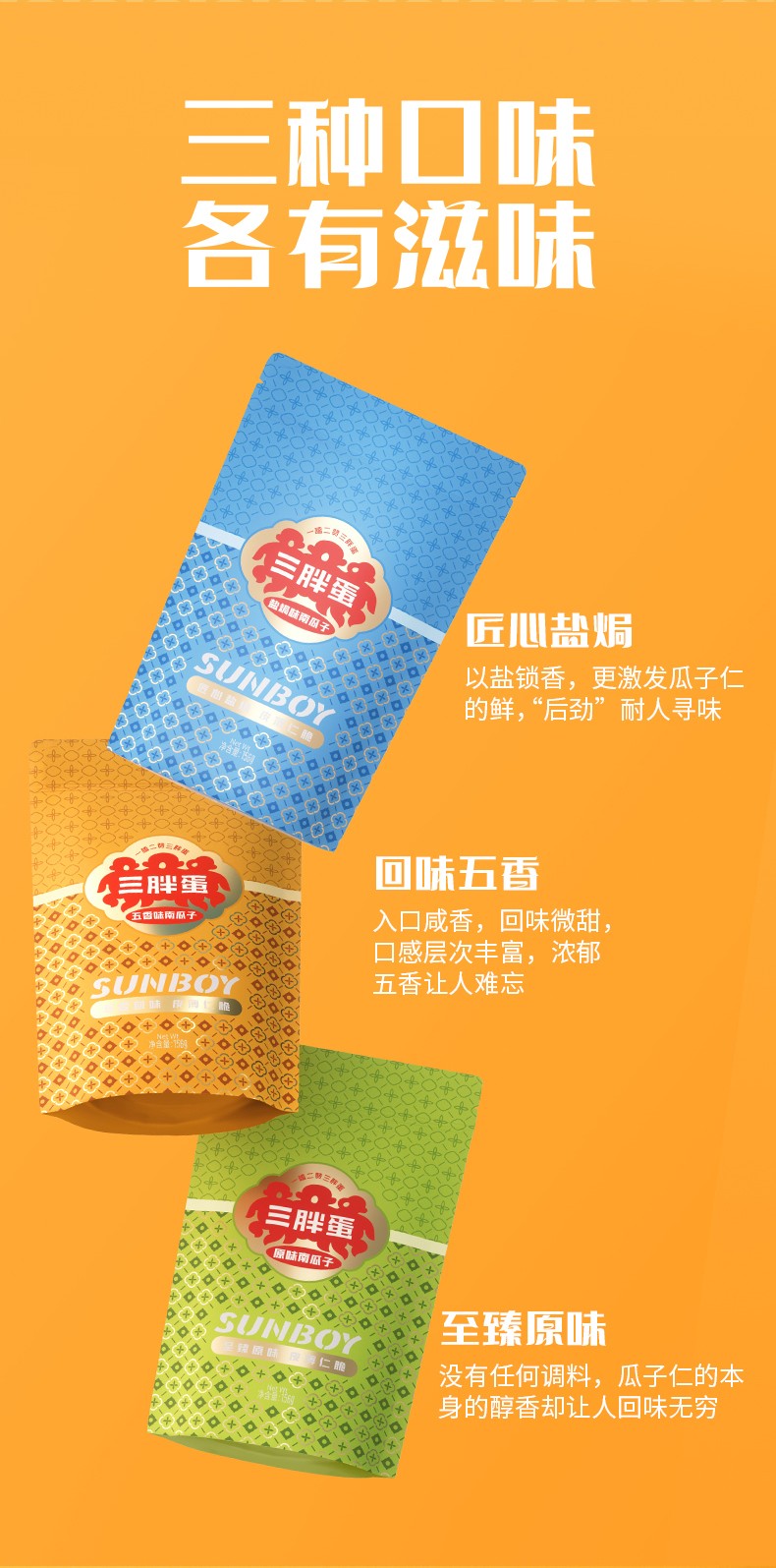 商品名称:三胖蛋 南瓜子 5袋*156g 原味/盐焗/五香 口味随机发