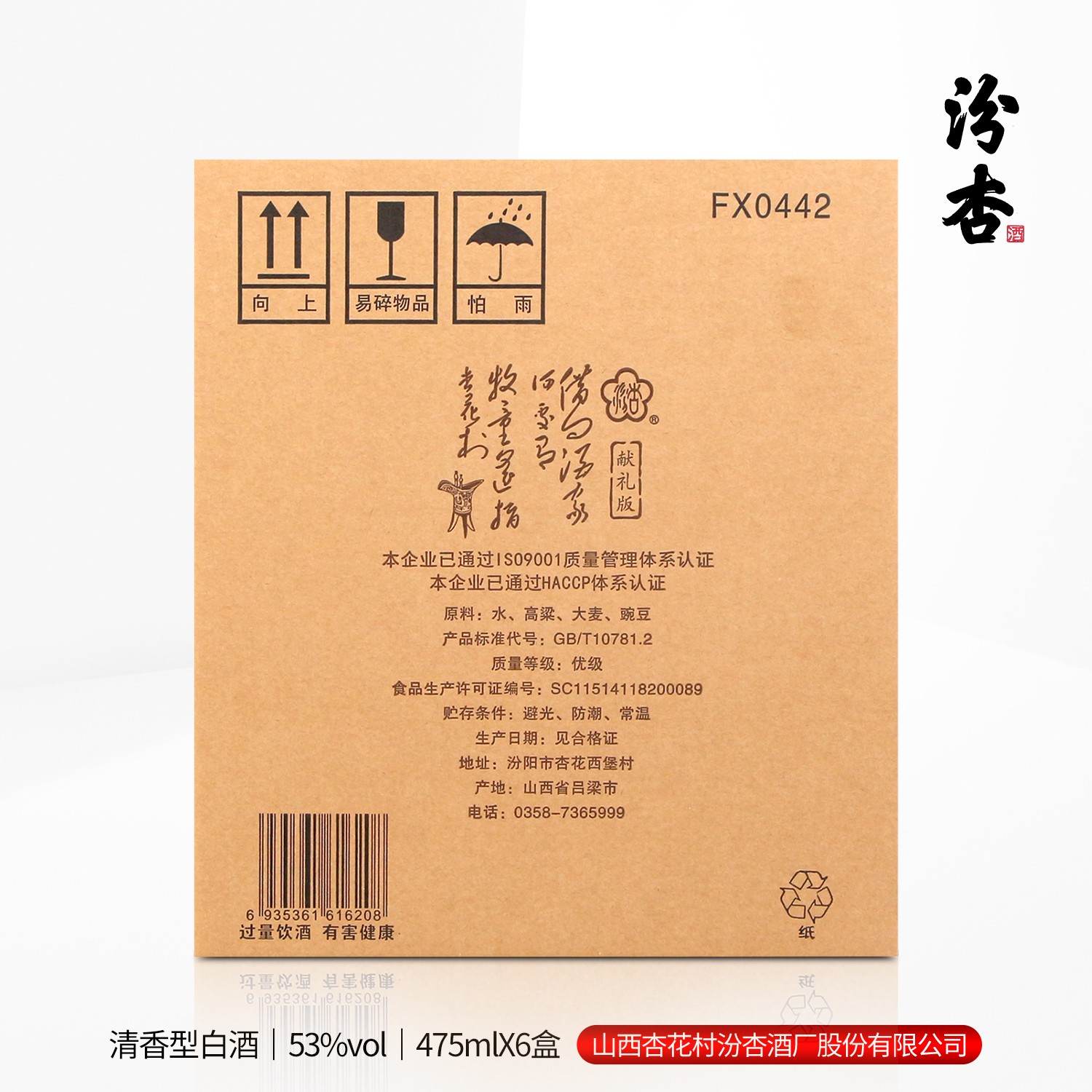 商品名称:汾杏献礼F20 475ml*6瓶 白酒 硬质礼盒包装