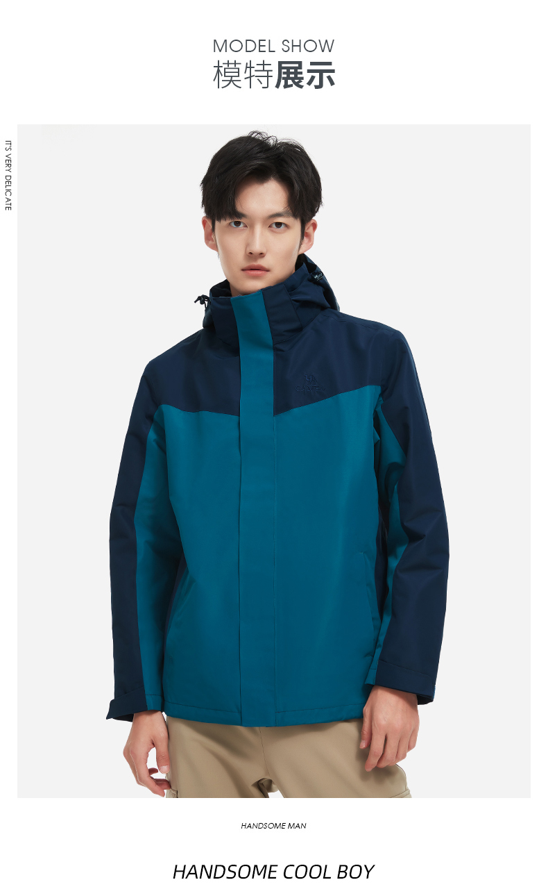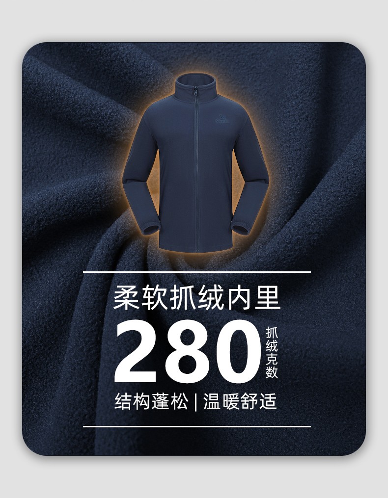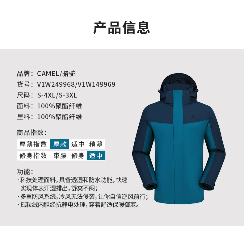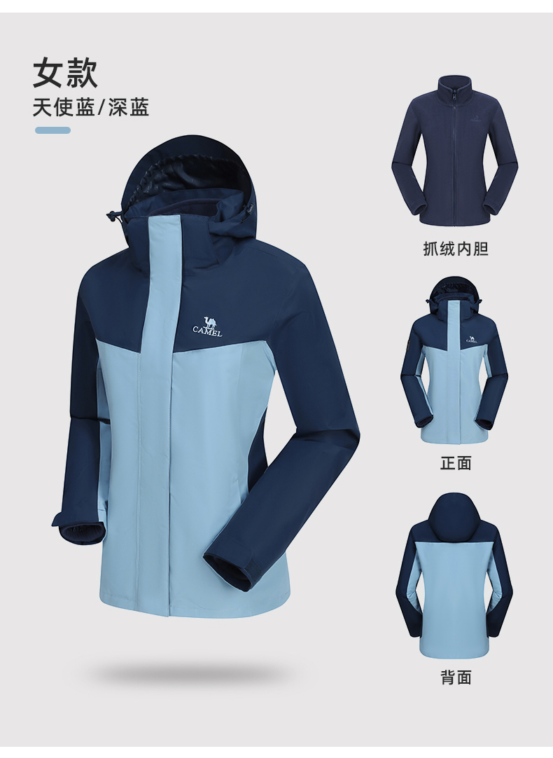 商品名称:骆驼 男士三合一冲锋衣(抓绒)V1W249968 黑墨灰 /爵士蓝深蓝 S--XXXXL 可选下单请备注尺码 颜色