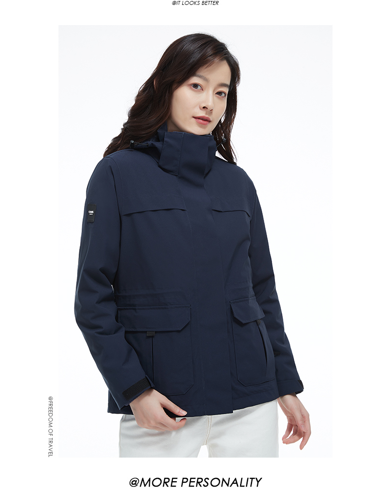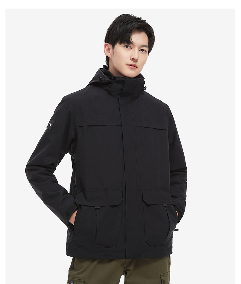 商品名称:骆驼 男款三合一冲锋衣(抓绒)V1W214255 黑/深蓝 S-3XL可选 下单备注颜色尺码
