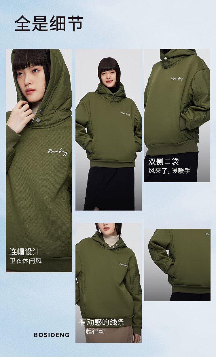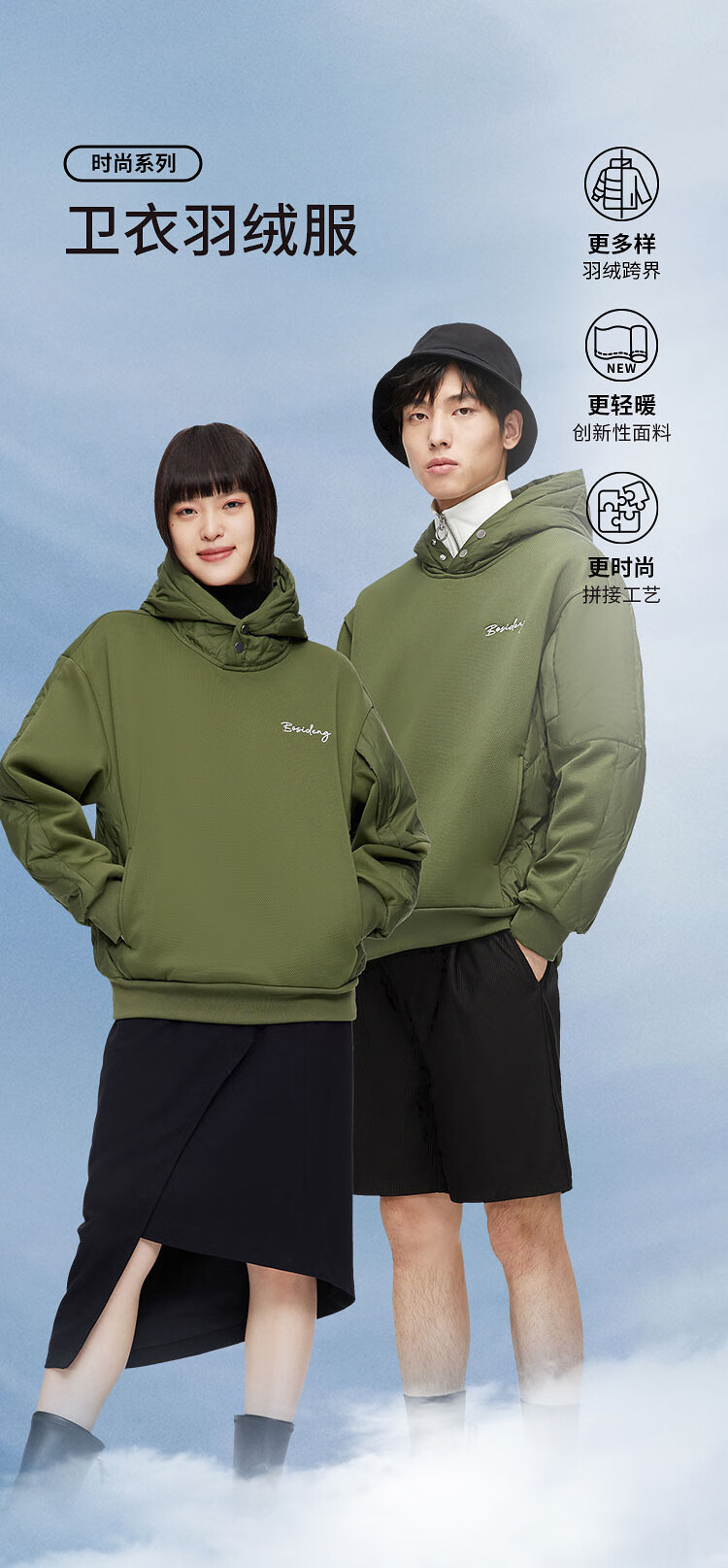 波司登 时尚拼接轻薄羽绒服 B20133780 灰草绿|4451/黑色|8056 155-185cm 可选 下单备注颜色尺码