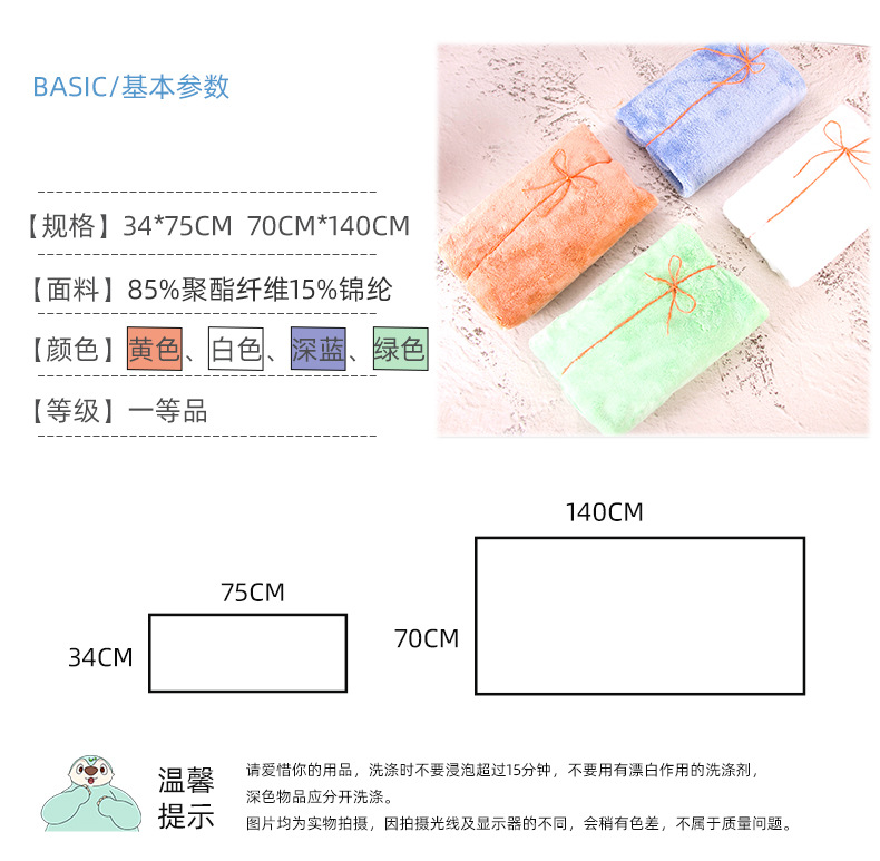 商品名称:尤多秀夕 吸水不掉毛超柔毛巾浴巾套装 YDX044 颜色随机发