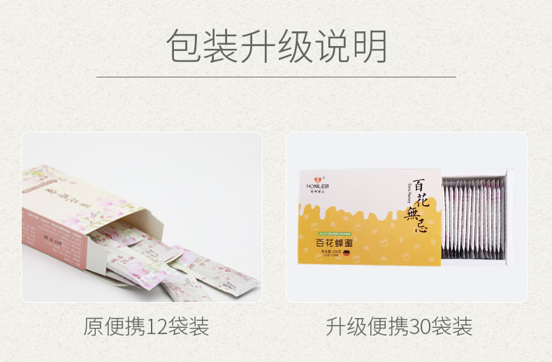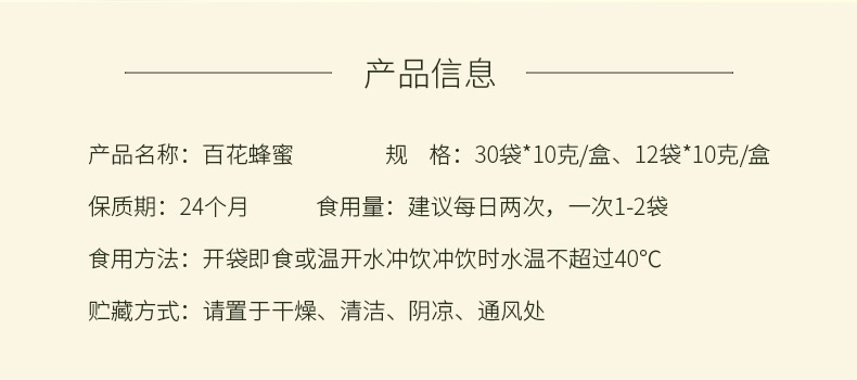 商品名称:恒亮百花蜂蜜 10g/袋*30袋/盒 2盒装