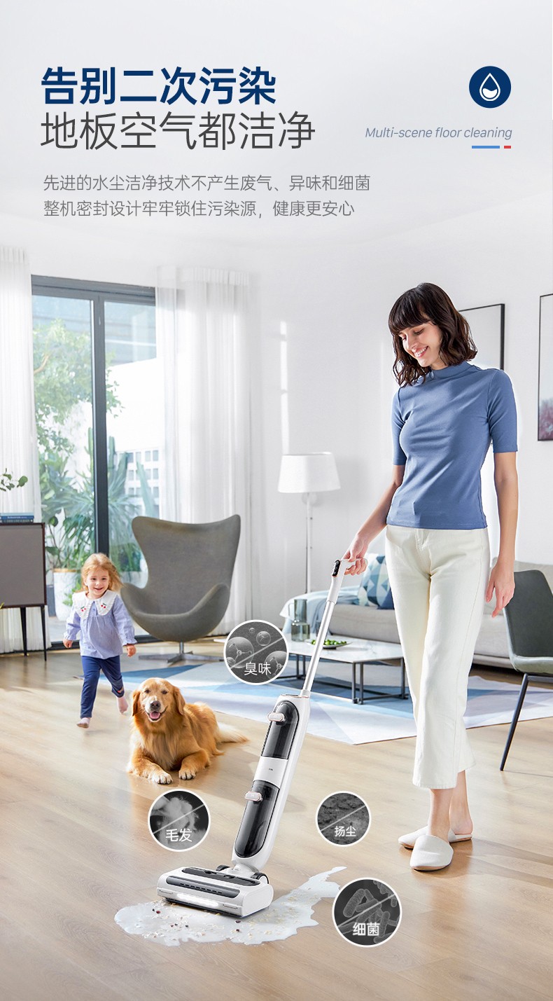 摩飞MR3300 无线智能洗地机拖吸一体家用扫拖吸三合一拖把手持吸尘器 白色 青海、西藏、新疆不发货