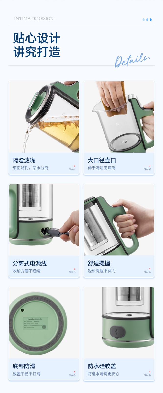 商品名称:摩飞电器morphy richards 养生壶MR6086(蓝色/绿色/白色/灰色可选 下单备注颜色)