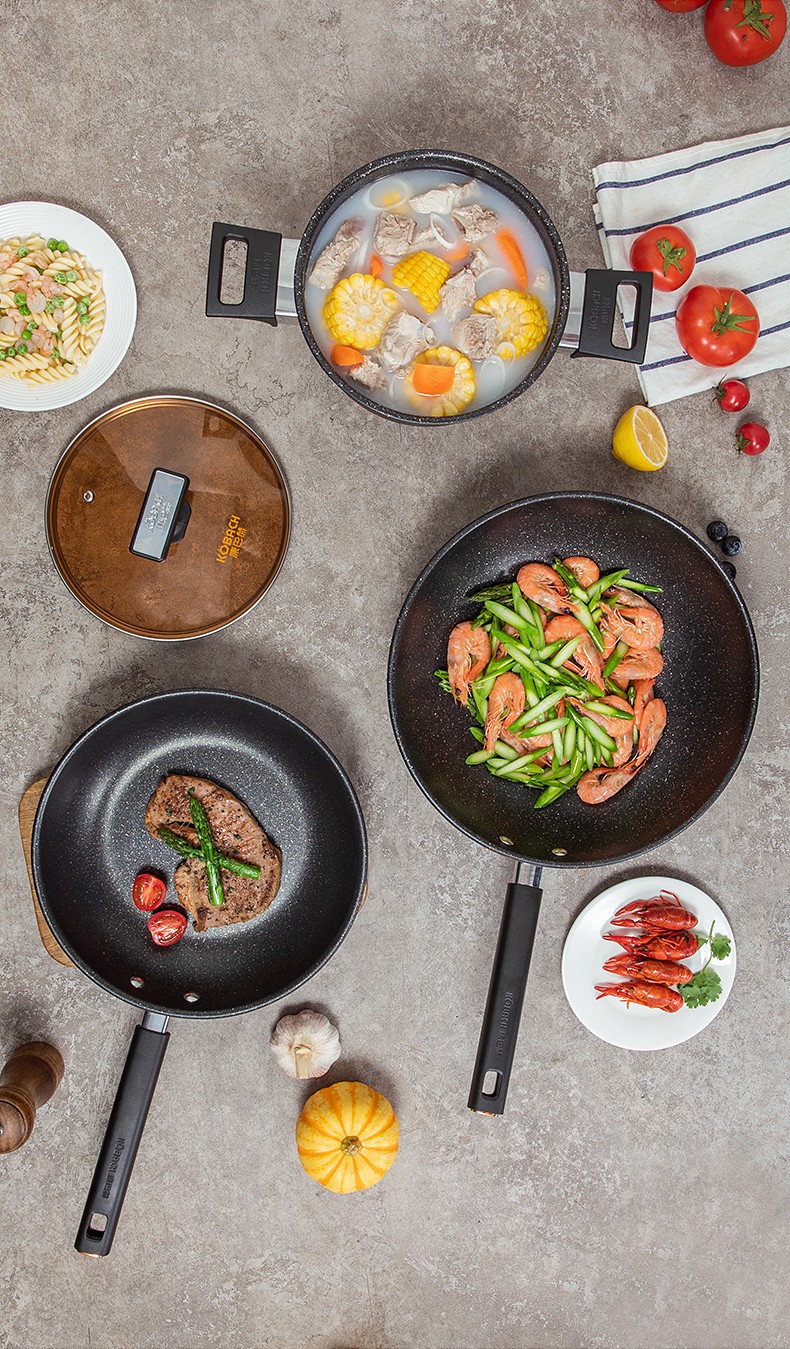 康巴赫焕新麦饭石色三件套KGM-T03 炒锅30CM/煎锅26CM/汤锅20CM新疆西藏运费另算