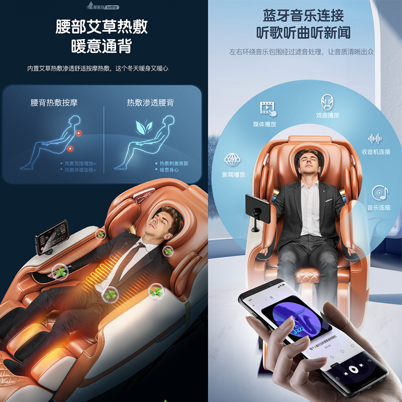 英菲力 语音声控豪华家用全身按摩椅 Q-12 橙白色