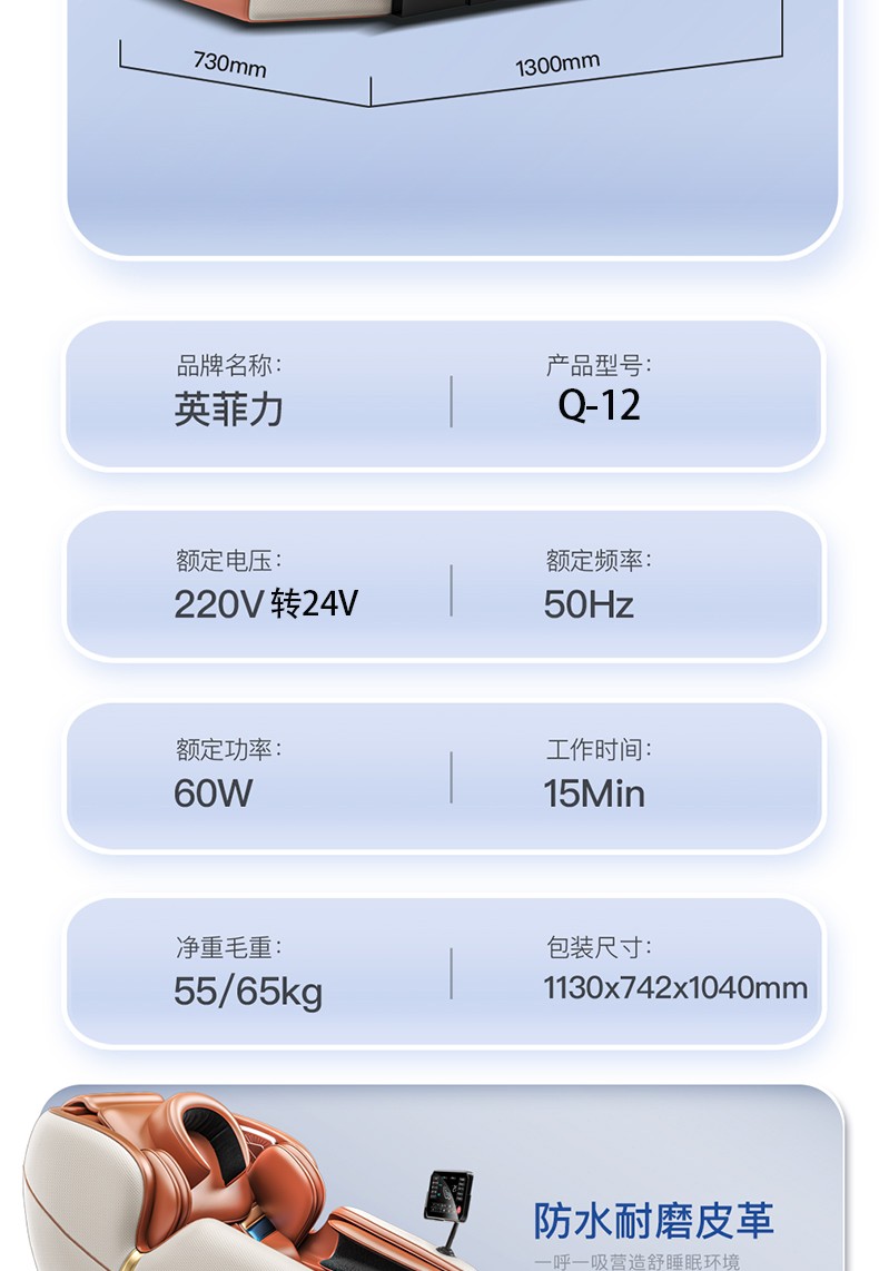 商品名称:英菲力 语音声控豪华家用全身按摩椅 Q-12 橙白色