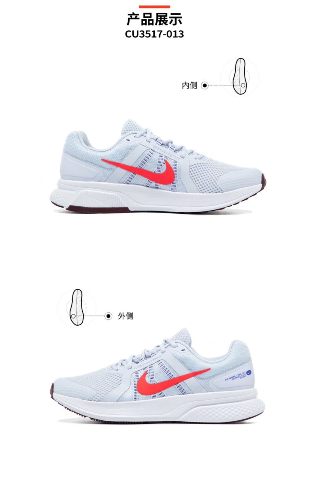 商品名称:耐克NIKE 透气网面休闲跑步鞋 灰红 CU3517-013 39-45 可选下单备注尺码