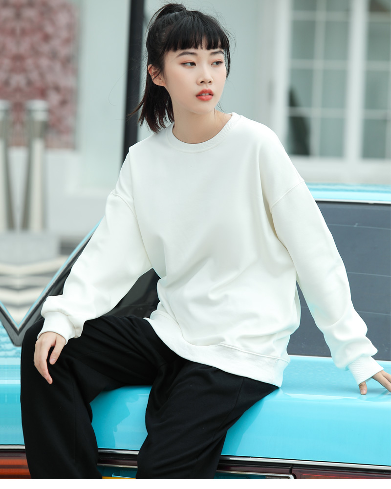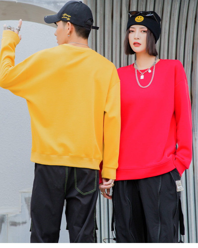 啄木鸟 男女同款落肩圆领加绒卫衣 HD0026 XS-4XL白色/黑色/红色/果绿色/雾蓝色/黄色/橙色/藕粉色 可选下单备注颜色尺码